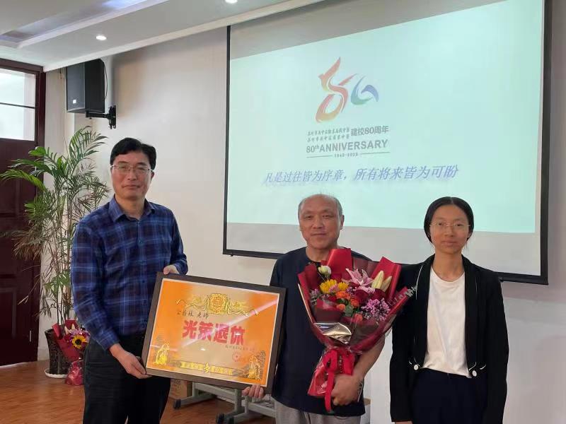 接着校领导向今年新退休的老教师颁发光荣退休证并由在职年轻老师向前辈献上鲜花现场氛围其乐融融