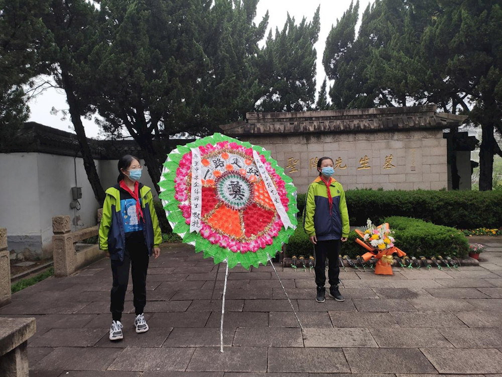 怀着崇敬、缅怀和感恩之情,学生和党员教师们队列整齐,肃立在墓前,学生代表们敬献花圈,朵朵鲜花寄托着我们深深的哀思。