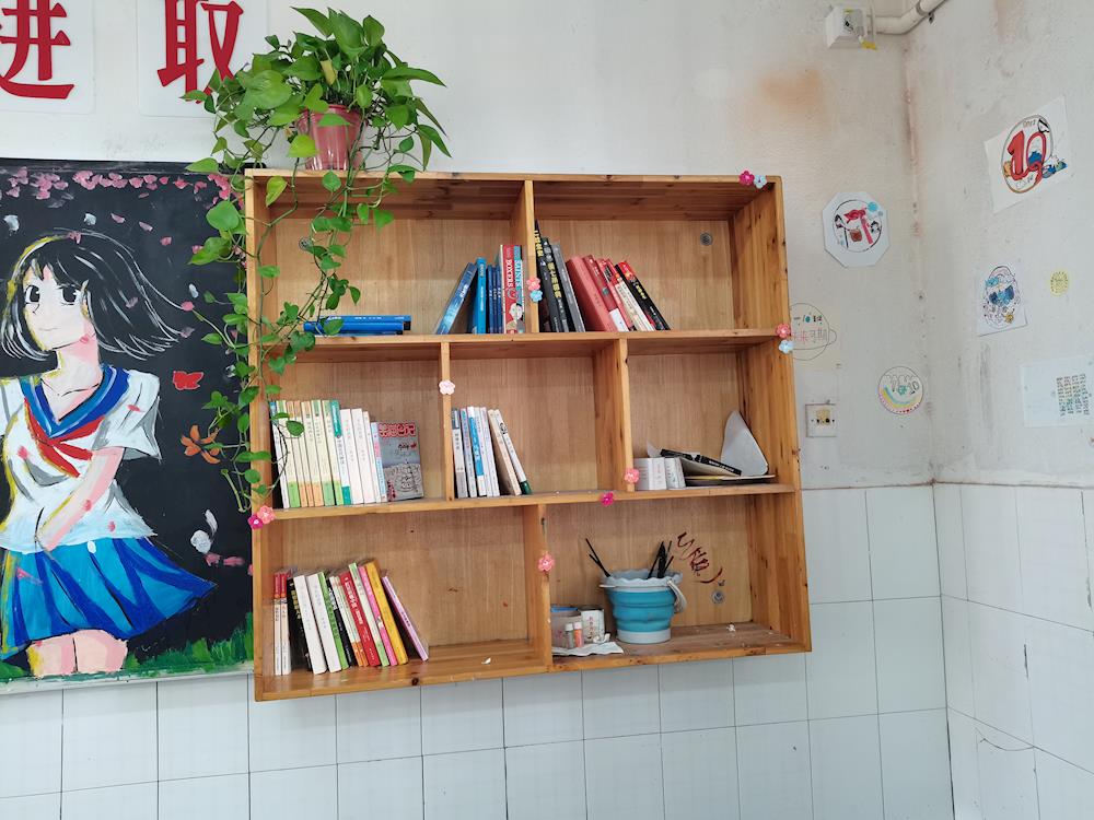 闻,空气中是花香与书香在交织,眼里有星辰大海,心中有繁花似锦,绿植的加入与图书角的打造让教室更添鲜活。