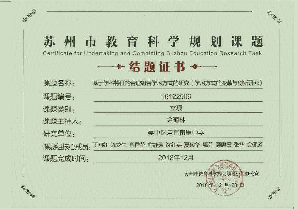 2014年,甫里中学从甪直中学分开独立,教育科研从零起步。“十三五”期间,在学校领导的指导与支持下,聚焦学科特色,探究学法,整合资源,落地生根,发挥课题研究的引领和支持作用,beat365中国唯一官网取得了可圈可点的成果。