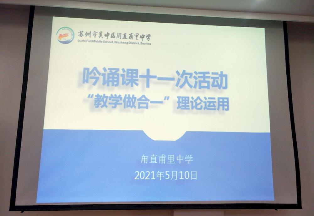 随后观看了甫里中学吟诵社团《街吟木兰诗》的吟诵视频。同学们有模有样的表演与婉转的唐调吟诵,生动塑造了木兰替父从军的深明大义、忠孝两全的英雄形象。孩子们需要舞台,只要给她们平台,每个人都会给我们意料之外的惊喜。然后,丁老师分享了课本剧的排练情况,指出学生对文本与人物的理解还有待提高。
