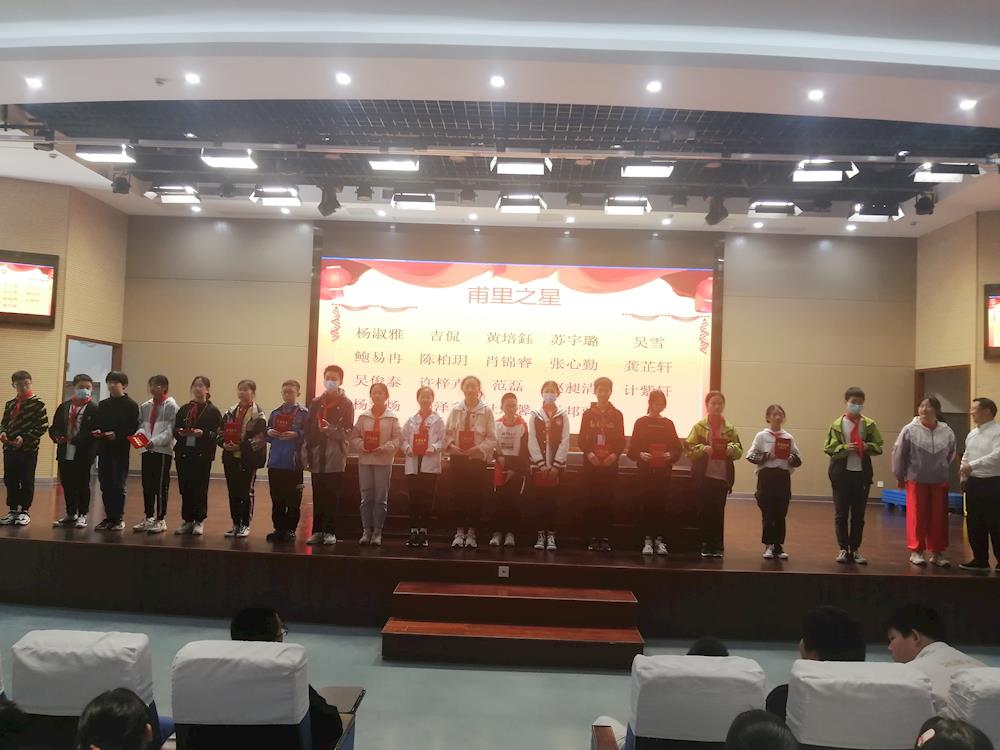 会上,邹翔老师和周燕老师分别宣读了在这次期中考试中被评为“甫里之星”“进步之星”光荣称号的学生名单。获奖学生激情昂扬地登上领奖台,校长助理盛永根老师和教务处副主任王芳老师为受表彰学生颁奖并合影。整个会场掌声雷动,气氛热烈!