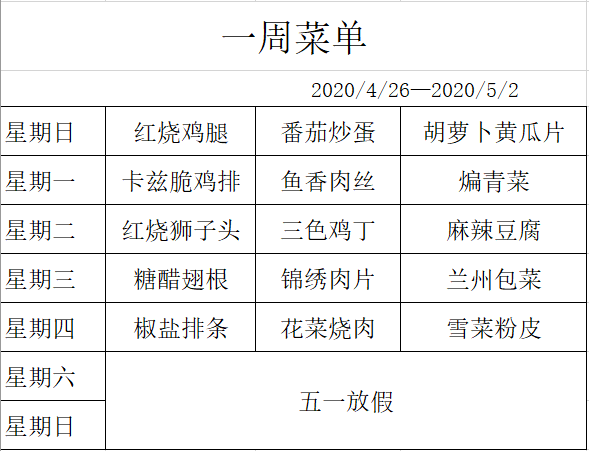 每周菜单