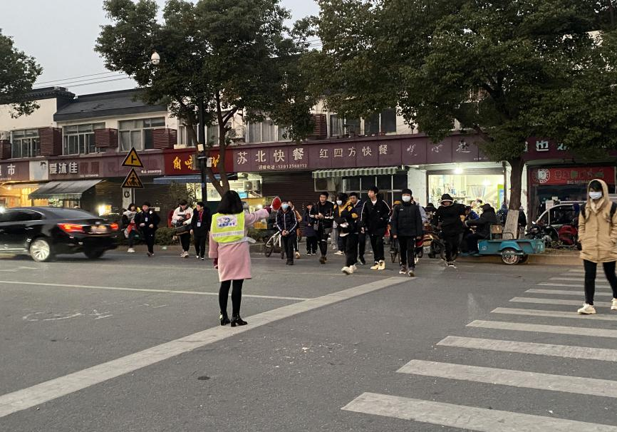 甫里中学的家长、学生和教师们也在以实际行动践行着雷锋精神。每天早上和傍晚的时候,总会有一群热心肠的家长志愿者们默默地坚守岗位,为来往的学生保驾护航。
