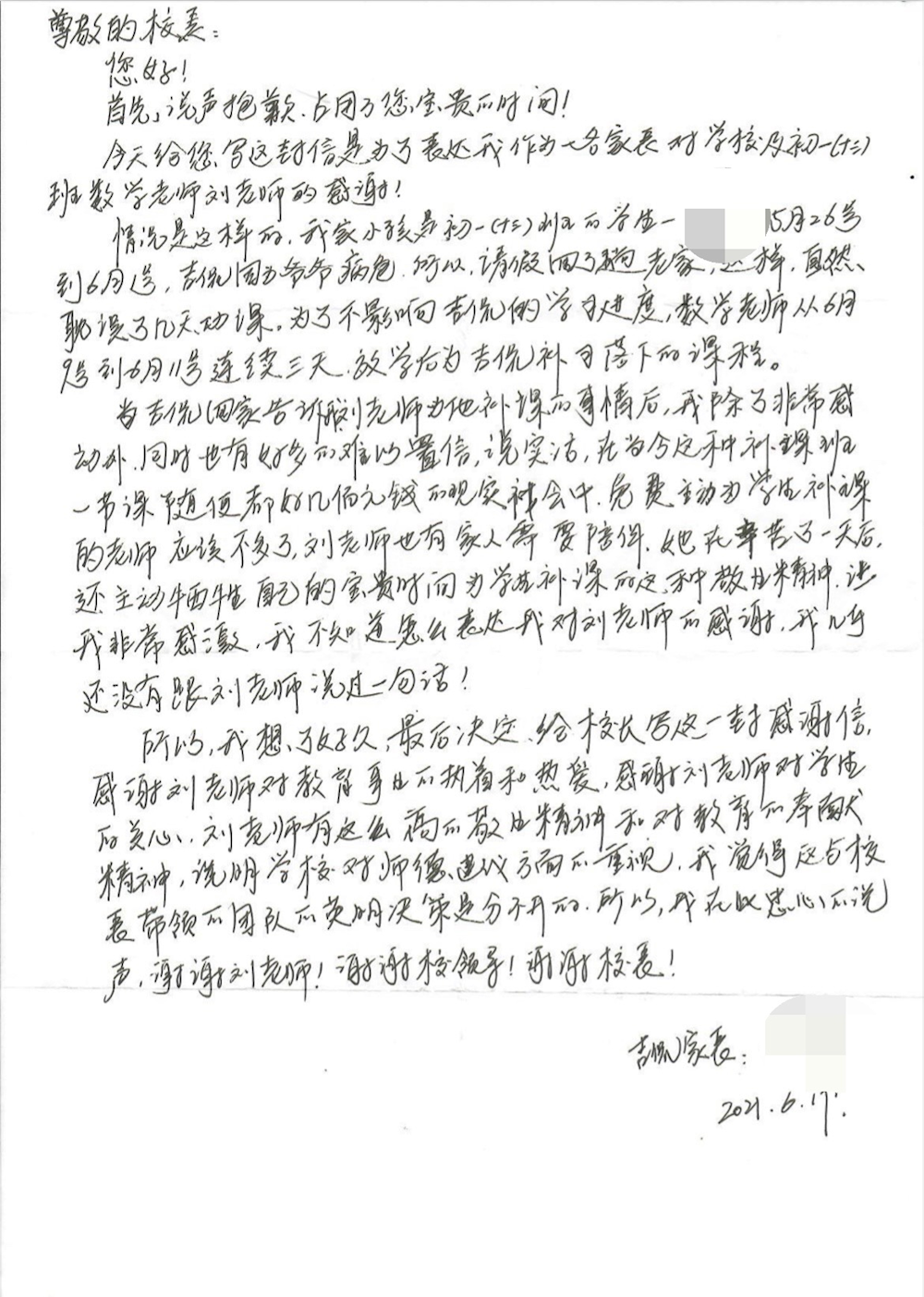 6月是丰收的季节,在甫里中学全体老师的努力下,学校收获了来自家长的满满心意。